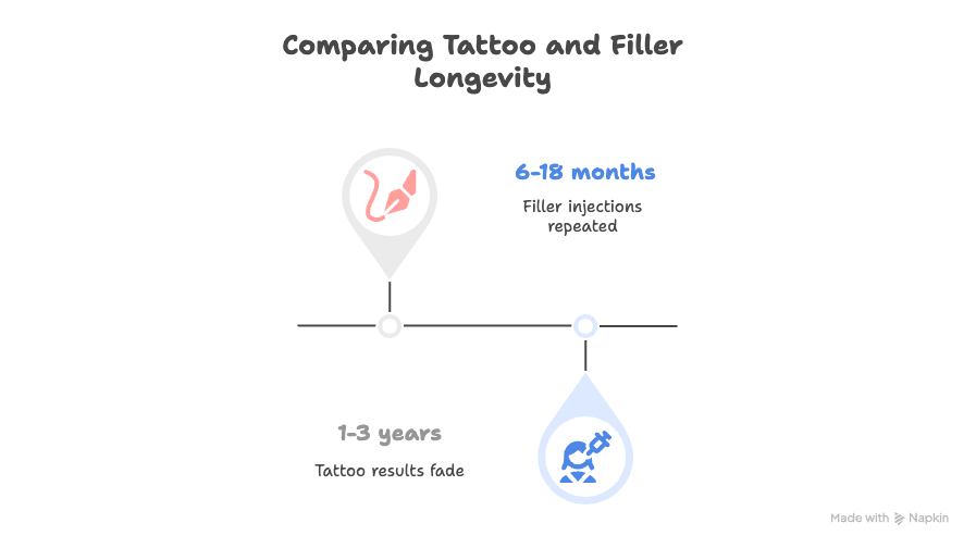 | Characteristic | Permanent lip makeup | Lip fillers |