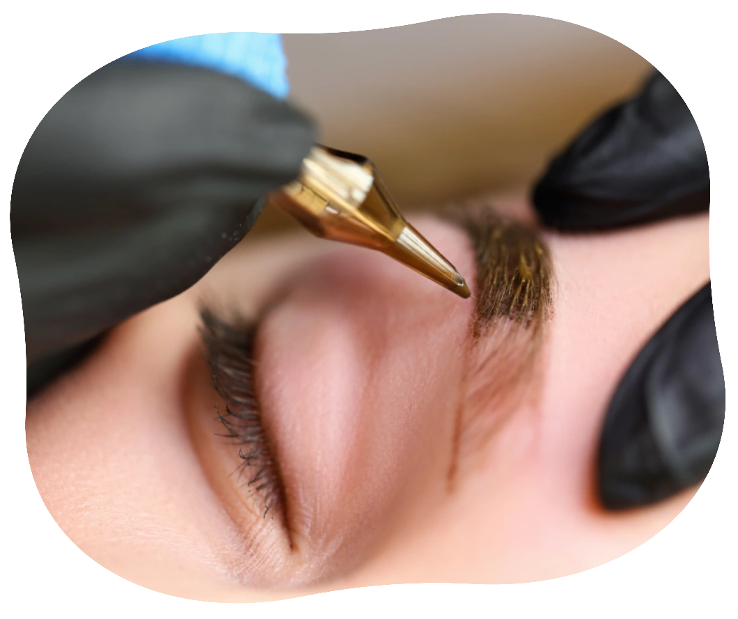 Hair strokes and pigment are deposited into the outer layer of skin using fine skilled precision and following your natural hair growth (if you have eyebrow hair). The strokes are covered with pigment and allowed to "soak" into the hair strokes. This is called a pigment mask.