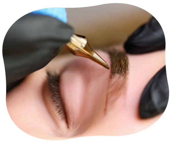 Hair strokes and pigment are deposited into the outer layer of skin using fine skilled precision and following your natural hair growth (if you have eyebrow hair). The strokes are covered with pigment and allowed to "soak" into the hair strokes. This is called a pigment mask.